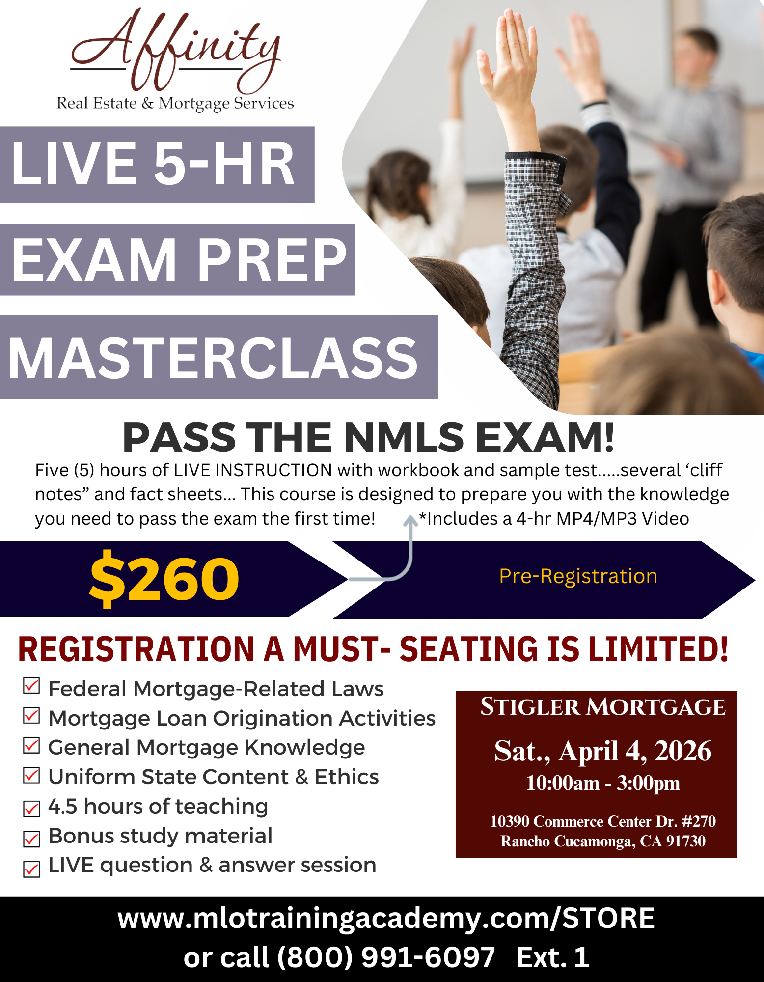 APRIL 4, 2026 MLO 5-HOUR CRASH COURSE - PASS THE NMLS EXAM THE FIRST TIME! [Rancho Cucamonga, CA]