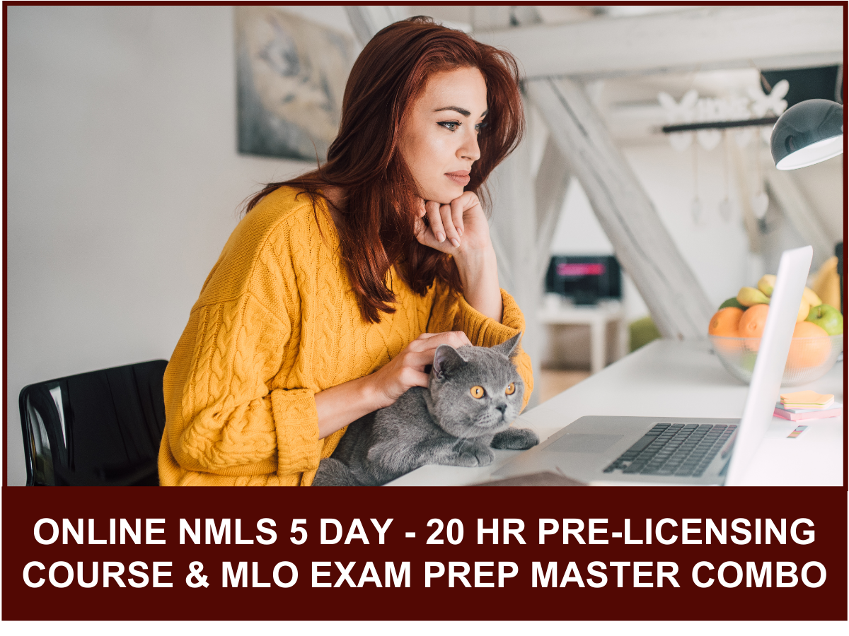 ONLINE NMLS 5 DAY 20 HR PRE-LICENSING COURSE & MLO EXAM PREP MASTER COURSE COMBO – February 10, 2025 thru February 14, 2025 (Registration ends 2/7 @ 6 pm (pst)